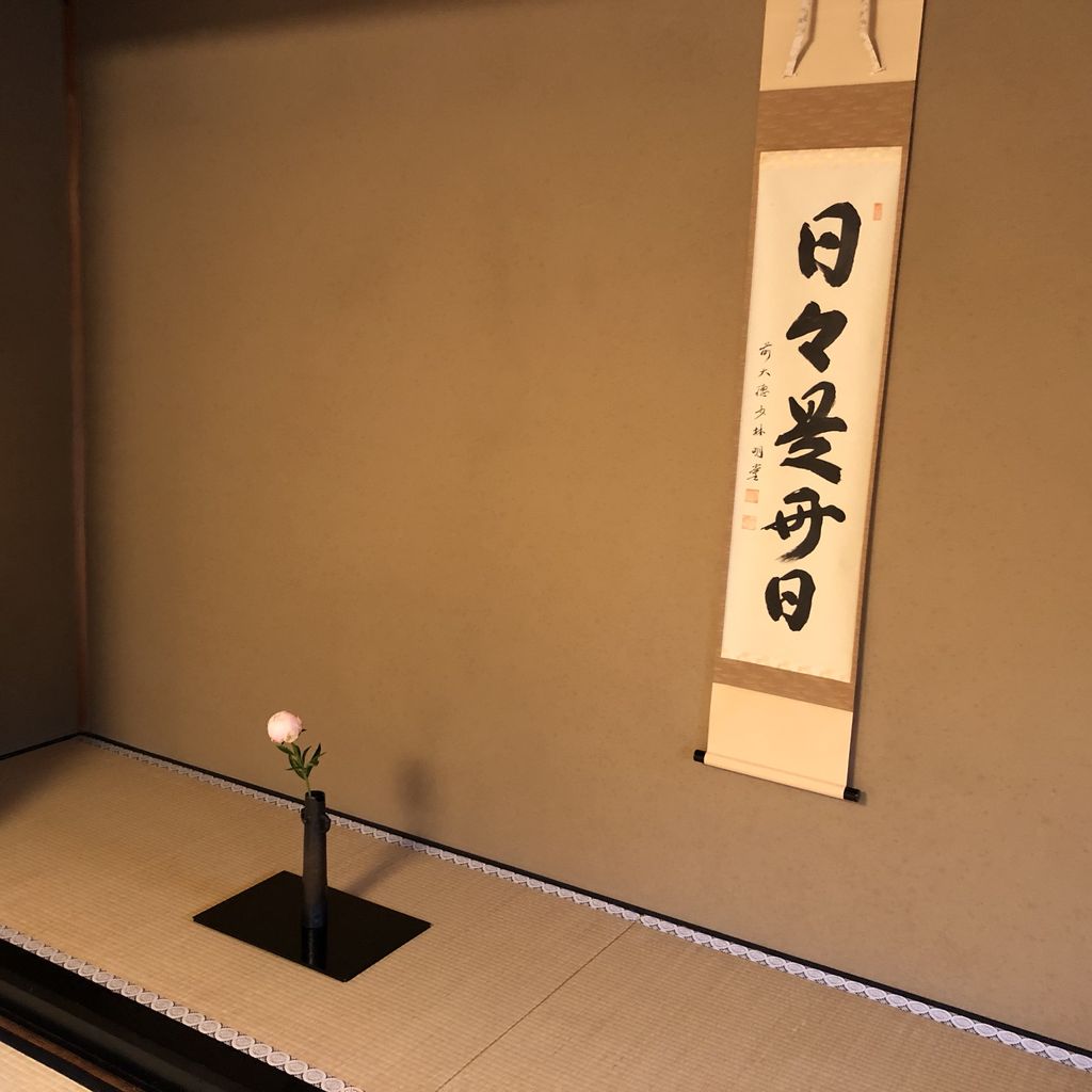 梅雨の真っ最中だというのに、爽やかな青空が覗く水曜日です。午前中からお部屋を取っていたのですが、この日は皆様の出足が遅かったため、午前中はI先生と私たち夫婦三人だけ。久しぶりに私が点前をして、静かな茶室で三人でお濃茶をいただきました。お稽古を続けているとたまにはこういう日もあります。
