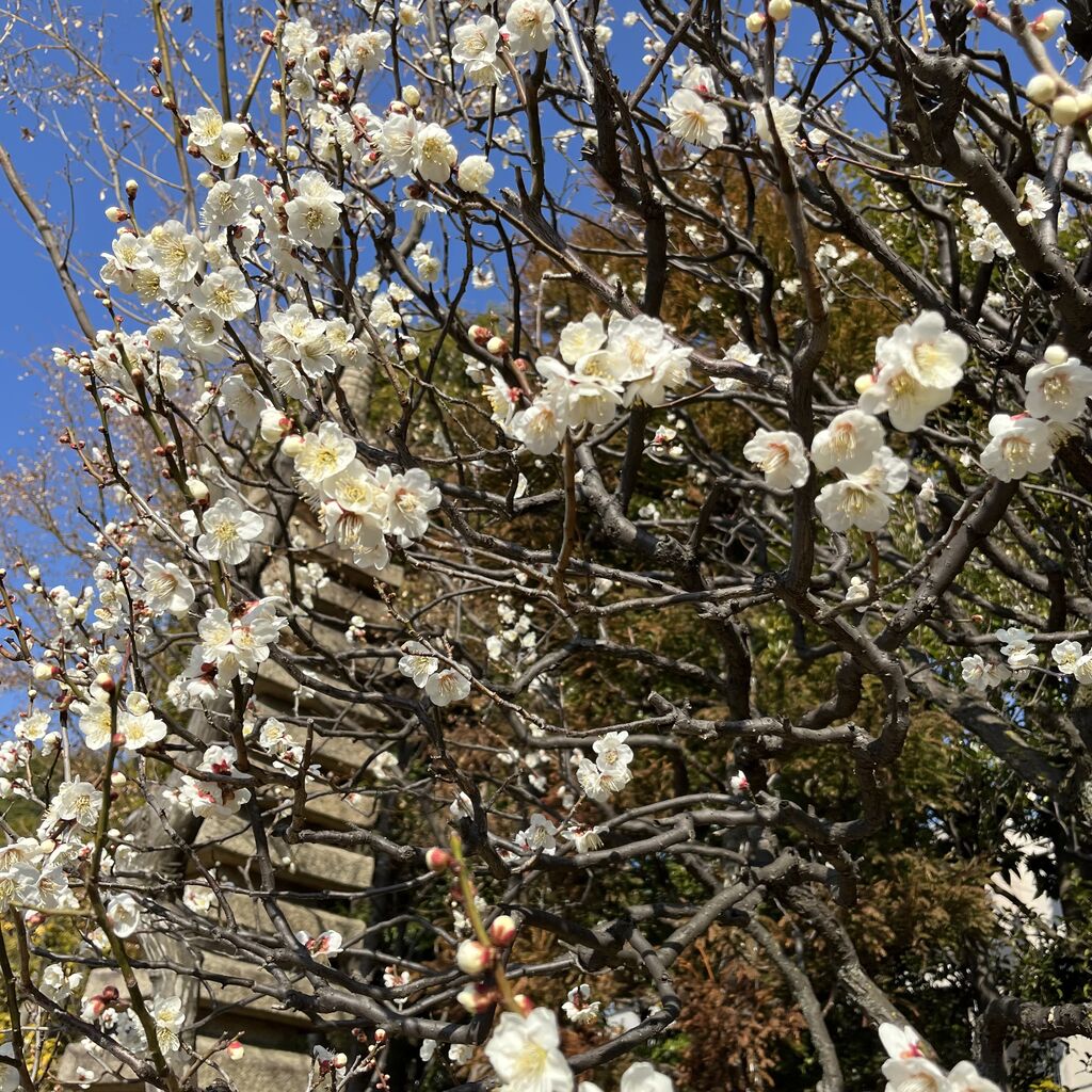 こちらは梅ですね。目白庭園の梅は種類が多く、こちらの木はまだ花盛りでした。
