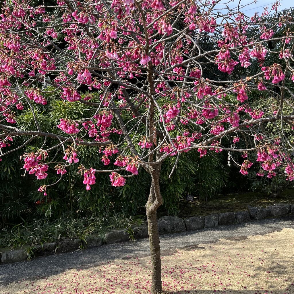 そしてこちらは芝生広場の寒緋桜です。もう満開を過ぎていて、芝生にはたくさんの花が落ちていました。