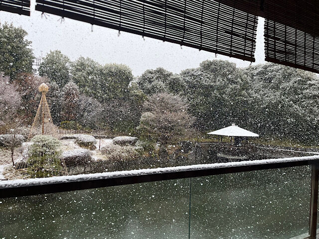 春分の日の前日のお稽古は朝から雪が降りました。東京はあまり雪の降る気候ではありません。ひと冬に一回か二回でしょうか。その日がちょうどお稽古日に当たるのはとても珍しいことです。